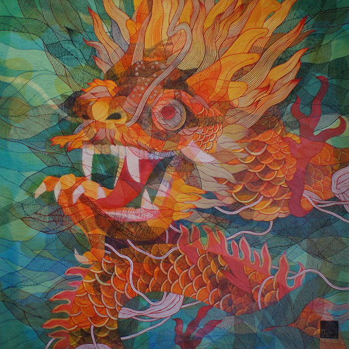 Dance of the Dragon, 2013. 142 x 142cm. Acrylic On Canvas